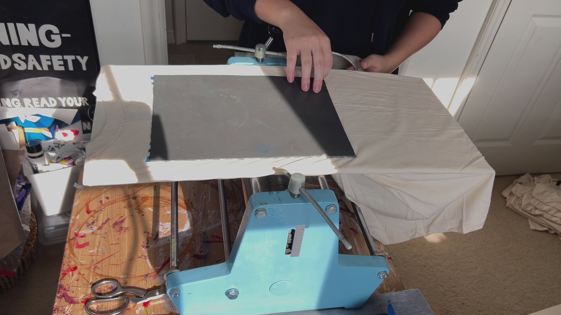 Each shirt is printed by hand! (hand carved linocut graphic)
